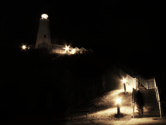 Psalm 23:4 - "Even though I walk through the valley of the shadow..." To me, there is a lot to this picture. In it I see beauty as well as an emotional tie. The beauty lies in the simplicity and the play between light and dark. The lighthouse itself is pretty and the lights and walkway create an enjoyable scene. The emotional ties, though, are what make the heart of this photo. You can see the battle of light and dark in the scene, going on all around. The walkway is representative of a path through life, and though we walk through darkness at times, you can always see the end. The person at the bottom is only beginning the journey towards the lighthouse, a shining beacon. More...